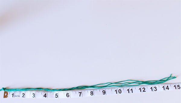 Once you are finished, cut the extra, unwrapped portion of your hemp twine, leaving about 15 inches remaining.